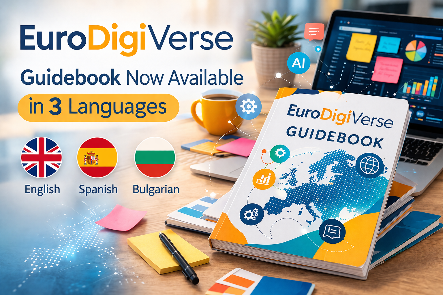 Nos complace anunciar la publicación de la guía EuroDigiVerse, un nuevo recurso de aprendizaje creado como parte del proyecto EuroDigiVerse. La guía ya está disponible en tres idiomas (inglés, español y búlgaro), lo que la hace accesible a un público más amplio de emprendedores, empleados de pymes y profesionales de toda Europa.